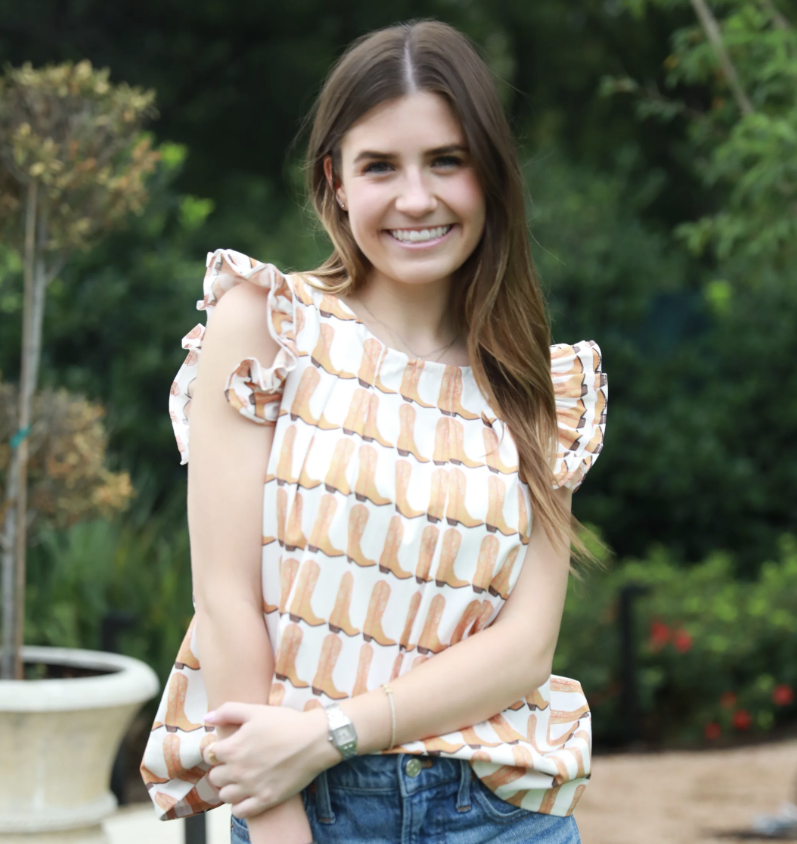 The Charlie Top is crafted with 100% cotton poplin, giving it a light and breathable construction. Its new ruffle sleeve design adds a stylish twist to a classic structured fit.