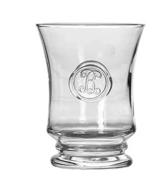 The Legado DOF/Juice Glass is mouth blown by master artisans in Portugal. A hand stamped monogram medallion is added along with a slight optic design which sets it uniquely apart, making it the perfect complement for any dining occasion. The Legado DOF/Juice Glass is available in all initials except for Q, X & Z. Dishwasher safe.