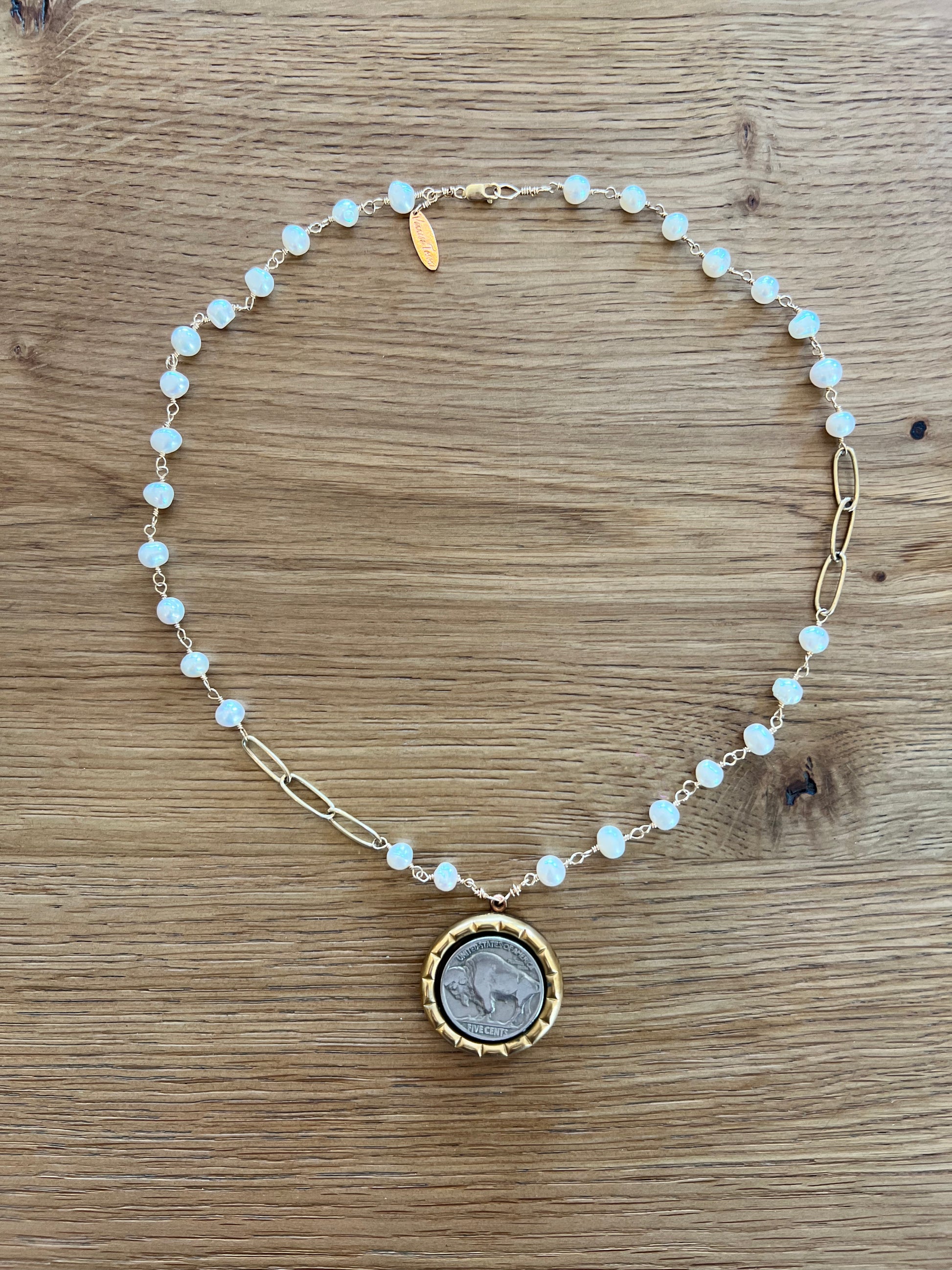One of a kind vintage buffalo coin and freshwater pearl necklace