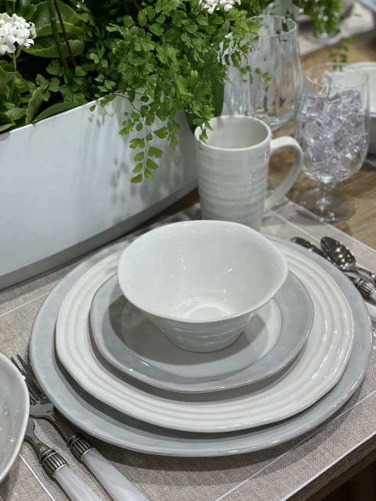 We’re in love with the soft organic silhouette and shapes of Terra! Set a beautiful Terra table paired with Skyros flatware, glassware and Linho linens! Terra is stoneware… handcrafted in Portugal. Freezer, oven, microwave and dishwasher safe.