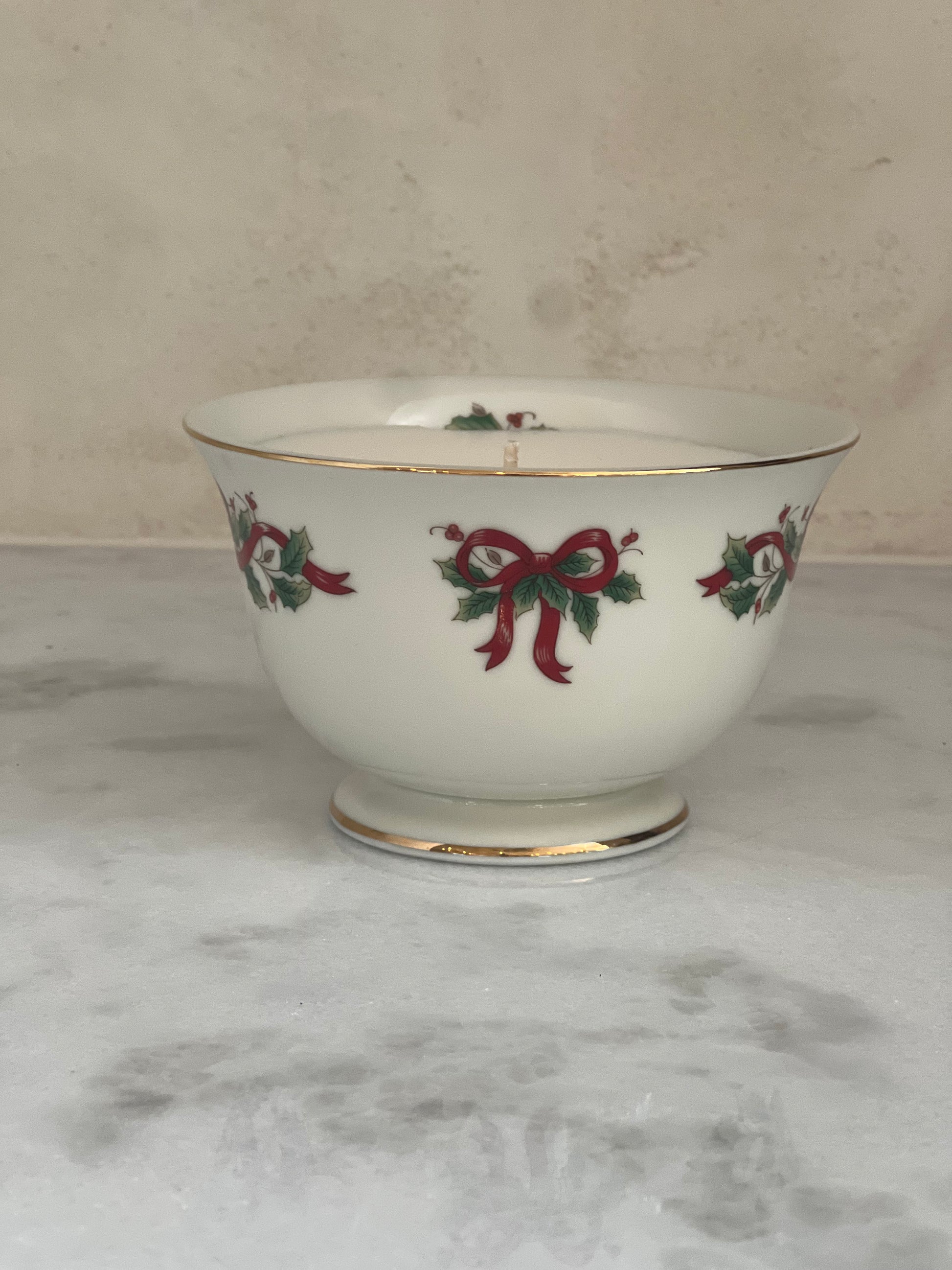 Vintage Footed Holly Bowl Candle